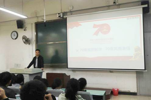 为庆祝中华人民共和国成立70华诞,w88win体育官网入口于10月21日下午4:00,在南校区A205以“70年披荆斩棘,70年风雨兼程”为主题开展主题党课,主讲人为公司党委副书记田雨。参加本次主题党课的有:各班班干部,员工组织主要干部,各辅导员老师。